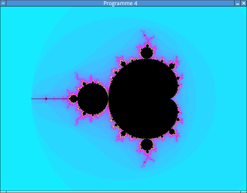 .Voici un exemple d’image genérée par le programme, après avoir cliqué près d’un point de la « vallée » située à la frontière droite de l’ensemble de Mandelbrot, près de l’axe réel.